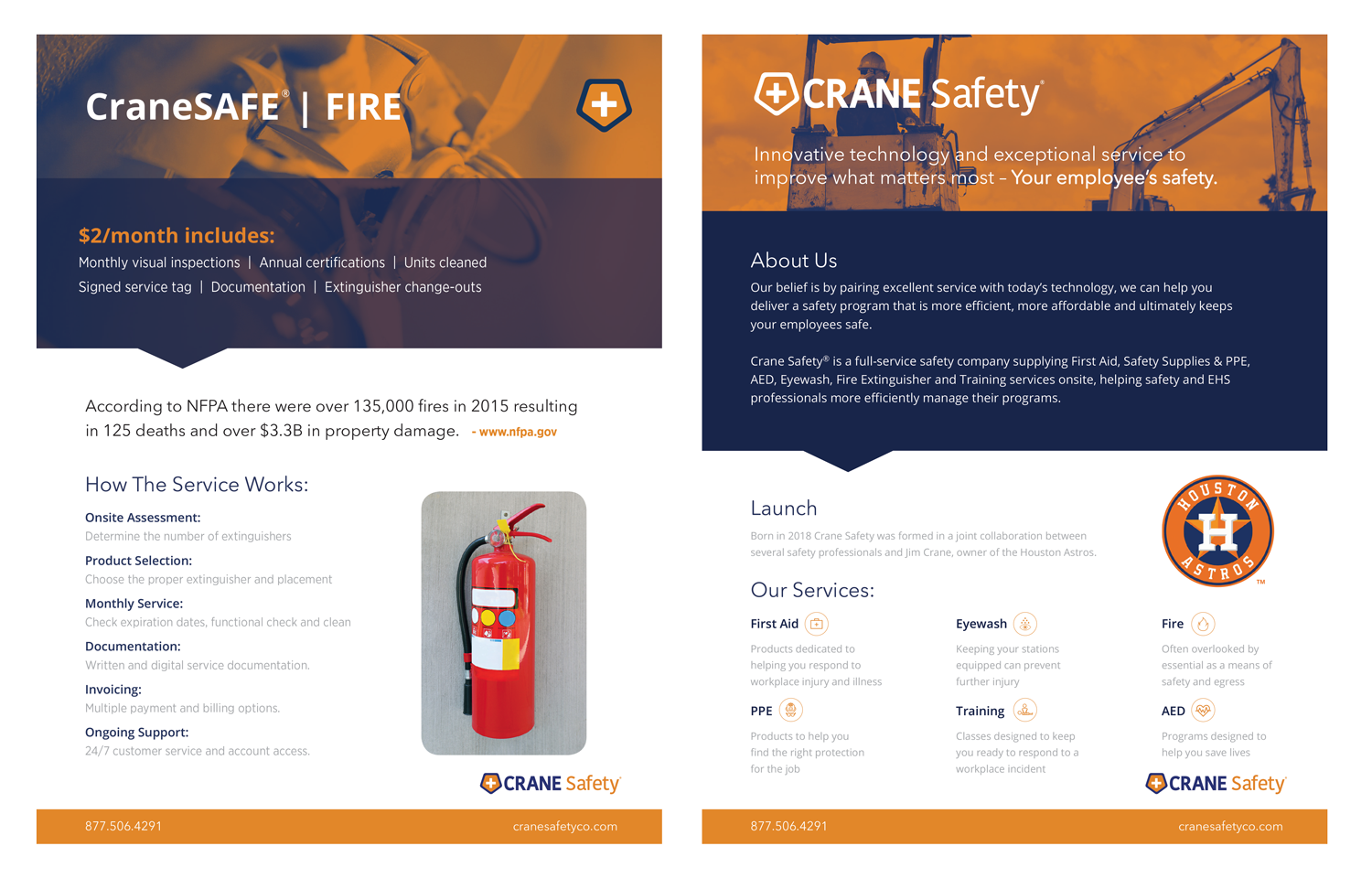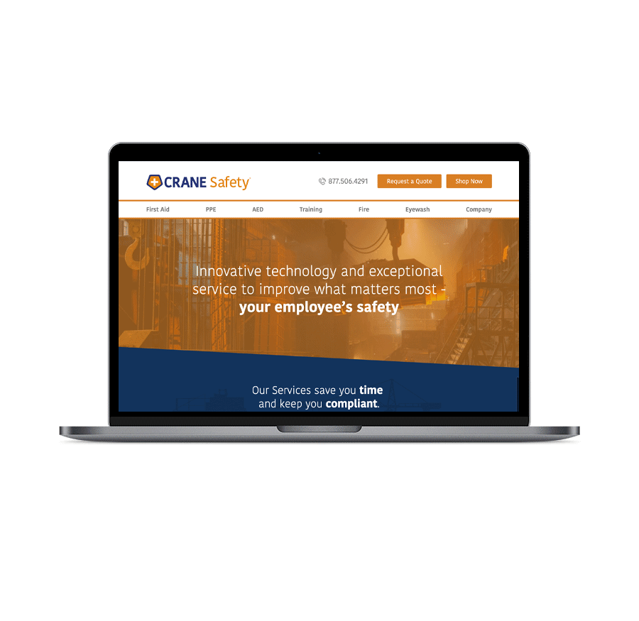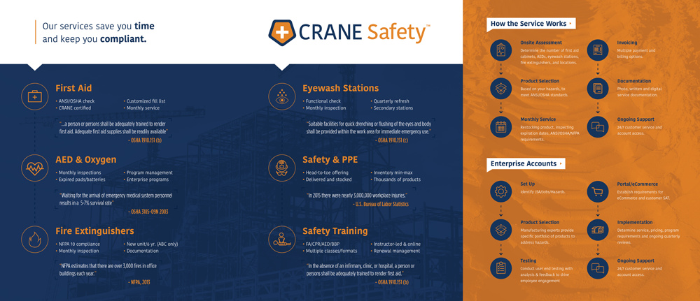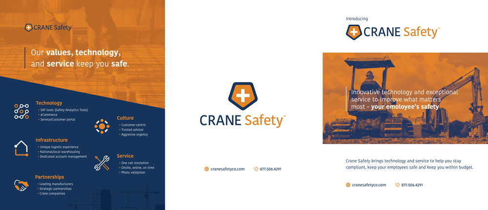 The logo was redesigned with new type treatment and color palate. From there, I designed a full portfolio of marketing/sales materials. Together these elements served as the bedrock for Crane Safety's brand, website and storefront.